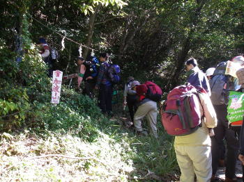 | 出発して間もなくしめ縄をくぐって山道に。 |