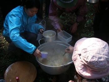 | 加波山神社親宮から戻ってくると豚汁は出来上がっていて早速いただきます。準備をされた方々ありがとう。 |