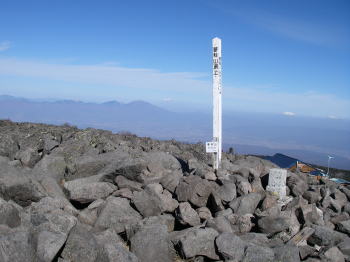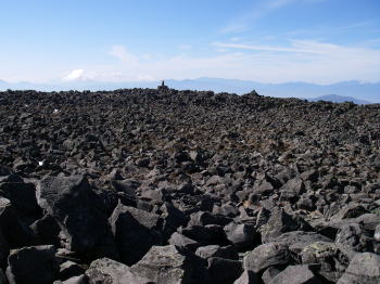 | 蓼科山山頂。大きな岩がゴロゴロとある広い山頂でとても歩きにくい。 |