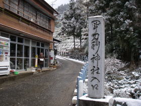 | 軍刀利神社に向かう道は一面の雪 |