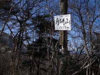 | 本社ヶ丸からの道と合流する1377m地点には『角研山(かどとぎやま)』と書いてありました。学生の時に角研(かくけん)と略称される研究室でゼミや卒業研究のお世話になったので何か因縁のようなものを感じました。 |