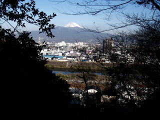 | 登山口からちょっと登ると沼津の街並みと富士山が見える。 |