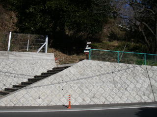 | 登山道は一旦ここで車道に出る。ゴルフ練習場の脇を通り、八重坂峠までは車道を歩く。途中車道をバイパスする山道があった。 |