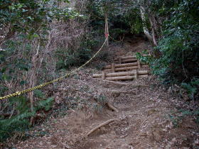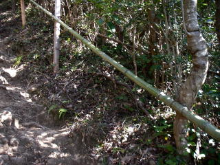 | 徳倉山からの下りの道には竹の手摺りがあった。何となく懐かしい感じ。 |