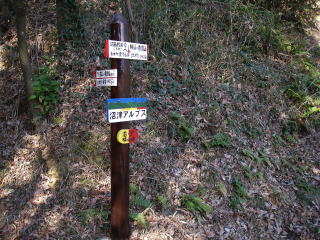 | アルプスといっても地図を見るとコースの大部分は標高200m位で、遊歩道か里山の道を想像して行きましたがなかなか手強い道でした。特に大平山(おおべらやま)から新城の間はワイルドな道で、岩稜の痩せ尾根のような所もあり意外でした。 |