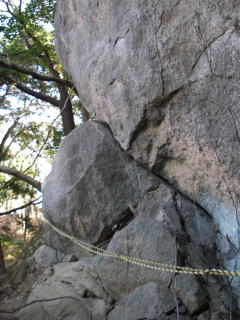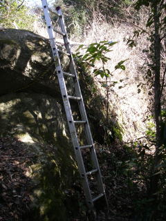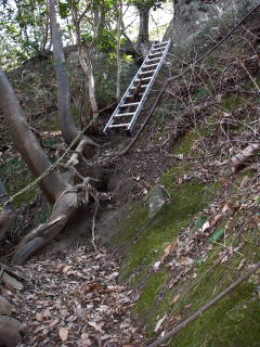 | 大平山を過ぎると、梯子やロープを頼りに登るところがあり、道のようすが一変する。岩登(ベテラン)コースと書いてあるところもあったが、迂回ルートがあり私は迂回ルートを通った。 |