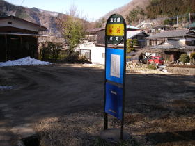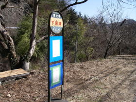| 地名は尾崎というらしいがバス停は下尾崎。登り口の浜沢からも下尾崎からもバスで上野原に出ることができる。 |