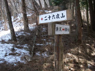 | 浜沢の二十六夜山へ入口を示す道標 |