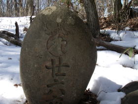| 昨年11月に二十六夜山に行った後、地図を見ていて近くに二十六夜山というのがもうひとつあることに気がつきました。調べてみるとこれらを区別するため私が後で気づいた方を、地名をあたまに付けて秋山二十六夜山といって混乱を避けているそうです。2.5万図に山名が書かれているのは秋山二十六夜山の方だけで、もちろん山名は単に二十六夜山です。こちらの方にも登ってみたいと思い行ってきました。 |