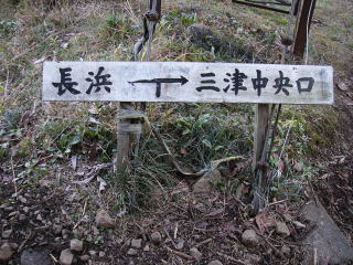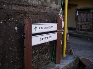 | 三津バス停はコンビニの前にあり、コンビニの左脇の旧道であるという道を50mほど行くと、気多神社の前にこのハイキングコース入口の道標があった。 |