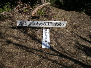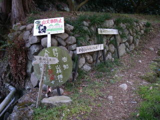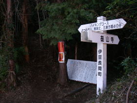| 道標にしたがって舗装道路を5分ほど進むとこの道標があり山道に入る。 |