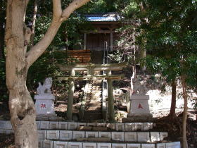 | 益山寺の一番奥の建物には鳥居、狛犬があり神社のようだ。 |