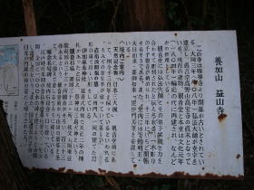 | 益山寺分岐の道標と益山寺の解説。益山寺まで5分と書かれていたので寄り道をすることにする。 |