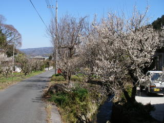| ゴンドラを使わずに下山し、小坂みかん農園を過ぎると梅が満開だった。 |