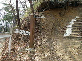 | 登山道が車道に出たところは、小さな公園のようになっている。 |