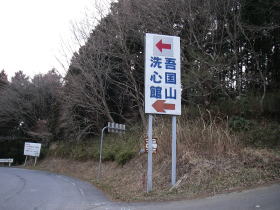 | 道祖神峠で車道に下り、洗心館までは車道を歩いて、吾国山への山道に入る。 |