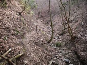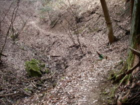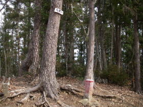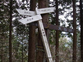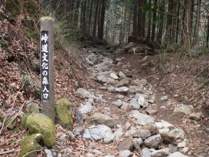 | 御前山の登りと下りには急なところが多く、トラ・ロープが張ってあるところが多い。 |