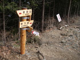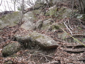 | 高畑山分岐。石碑のようなものがあるが、石仏らしくない。 |