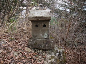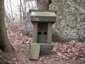 | 御前山山頂とちょっと離れたところにある石祠。ハート形の窓があり、興味津々。 |