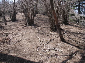 | この道を改修中の登山道と思い込み、林道に下ってしまった。そのまま戻ってまた工事の人と顔を合わすのも気が進まないので、林道を物見隧道に向かって歩く。途中で登り返せそうなところがあったら登ろうと思ったが、結局隧道をくぐり抜けたところから、隧道の上の登山道に行くことになった。距離は長くなるし、林道への下りと、登山道への登り返しが加わりたいへん損をした気分。緊張感が欠けていたと反省。 |