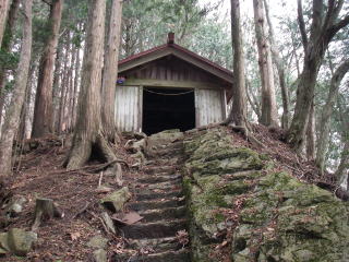 | 山頂をちょっと下ったところにある『和見王勢籠神社奥社』祭神は日本武尊と書いてあった。 |
