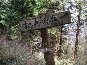 | 和見への分岐の近くに『すみれの丘』があり、行ってみると落ち葉に覆われていてスミレを見ることはできなかった。覆われたままでスミレが花をつけることができるのかが心配になった。また見頃を5月3日と日付まで限定して書いてあるのが面白い。 |