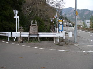 | 梨ノ木平入口。ここまでは車道が続いているが車道をバイパスする山道がある所があり、そこを歩いた。 |