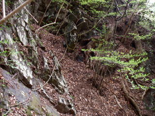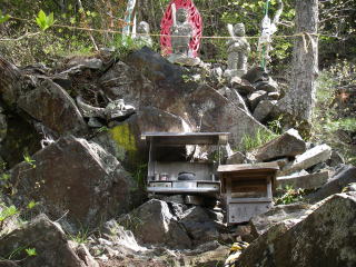 | 落ち口に一番近いところにある仏様。この先には道はなかった。ここが男滝の展望台といったところか。 |