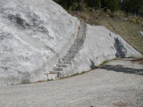 | 小刻みなジグザグを繰り返す急な道で、こんなトラロープを頼りに登るところもあった。 |