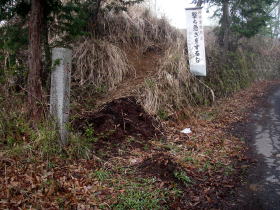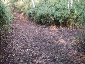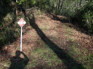 | 新犬切峠、近くの犬切峠にも峠の名前を示すものはなく、石保戸山や藤尾山への登り口という道標もなかった。 |