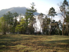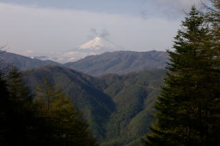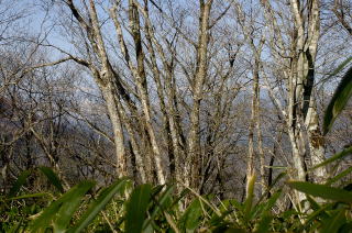 | 山頂から樹間に南アルプスの峰が白く見えたが、写真では分かりそうもない。 |