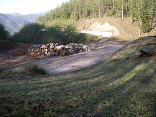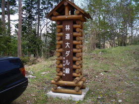 | 新犬切峠は林道大ダル線の起点で、広場のようなスペースがある。 |