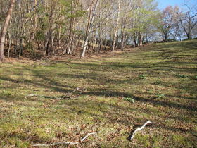 | 防火帯の歩きは、急な坂を可能な限り直登してしまうのできつく感じること多いですが、草地なので花を見られることが多く、展望もきき楽しいものです。今回は時期が早すぎたせいか花はあまりなく残念でしたが、またの機会を狙いましょう。 あの広い防火帯の草をきちんと刈ってあるのには驚きます。大変な作業量ではないでしょうか。毎年のことですからそのご苦労が忍ばれます。 |