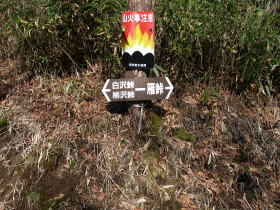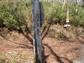 | 鳥小屋の道標。山頂の山名表示を除けば、今日始めてみる道標だ。 |