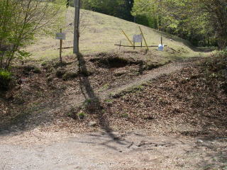 | 雨量計テレメーターの裏にある石保戸山の登山口のスロープ。スロープを上がると防火帯のある尾根だということが分かる |