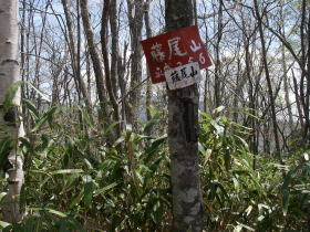 | この後、ヤブ沢峠、作場平と辿り、新犬切峠に戻った。この間ははっきりとした道で、道標が沢山あり迷う心配は無し。次に犬切峠に行き藤尾山へ。 |