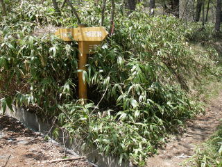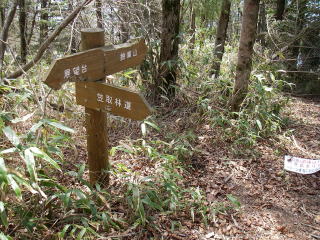 | 柳沢ノ頭からハンゼノ頭近くの分岐に出て鈴庫山に向かうと、電波中継所に向かうと思われる分岐があり、道標のその方向には笠取林道と書いてある。何とも分かりにくい。 |