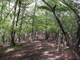 | 高指山に行くときは巻き道を通ってしまい大棚ノ頭を通らなかったので、帰路に通った。 朝早かったせいか、あまり霞が掛からないうちに富士山を見ることができた。道路が混むのを避けるため早朝に家を出て、温泉が開く迄の時間つぶしに登ったが、きれいな富士山を見ることができて大いに満足。 石割山に向かう。 |
