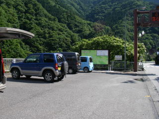 | 鴨沢の駐車場。ここが鴨沢のバス停にもなっていて、青梅街道をはさんでトイレもある。 |