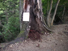 | 七ツ石山を巻いてブナ坂へ。ここから日原に下る道にはロープが張ってあって通行禁止になっていた。 |