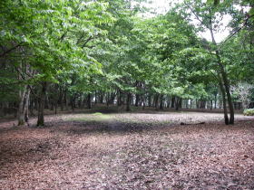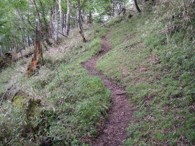 | 三条ダルミを過ぎると小さな笹の生えるなだらかな樹林の道 |