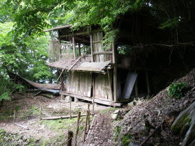 | 親川に近づくとこのような廃屋や廃屋跡がいくつもあった。昔はこんな奥にも住居があったのだ。鴨沢からの登山道脇にもあった。 |