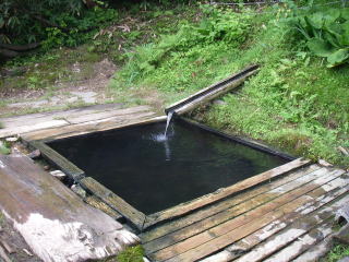 | 北又ノ水。栂海山荘で使う水と明日の行動中の水を補給して山荘に向かう。たくさん水を持ったので山荘では心おきなく水を使うことができた。 |