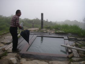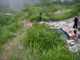 | 黄金ノ湯。露天風呂巡りのルートの脇にある湯で、女性はあまり入らないそうです。入ってみると温度が低く、長時間入っていられました。 |