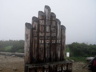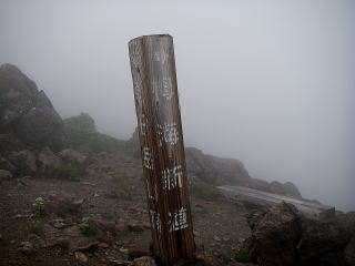| 千代ノ吹上から朝日岳の山頂にかけては、ミヤマムラサキ、イワオウギ、イブキジャコウソウなどがたくさんあったが、ガスが出て風が強かったので写真を撮ることができなかった。翌日も同じ所を歩いたが更に風が強く、写真を撮れなかった。 朝日小屋に着く頃には雨が降り出したが、本格的に降る前に小屋に駆け込んだので濡れないで済んだ。 |