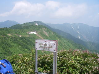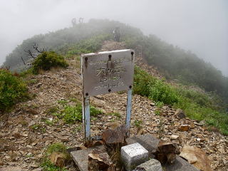 | 黒岩山。黒岩山付近までまでくると灌木の藪が目立つようになり、高山お花畑から低山の藪に急変したような感じだ。 |