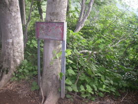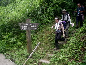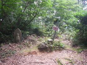 | 坂田峠。ここには林道が来ていてタクシーを呼んで下山することもできるので一安心だが、もちろん親不知を目指す。 |