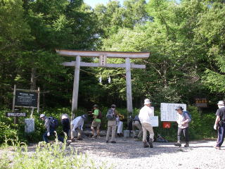 | 当初の予定では蓼科牧場からゴンドラを使って七合目に行く予定でしたが、ゴンドラの運転開始が9時からなので、それより早く歩き始めるために、蓼科湖の宿からタクシー3台で七合目登山口に来ました。 |