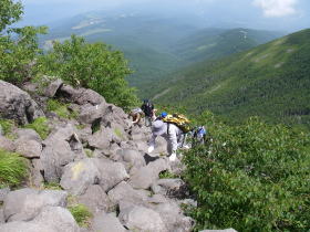 | 将軍平から山頂にかけての大きな岩のある登りや、女神茶屋への急な下りは山になれていないメンバーには歩きにくかったらしく、予定よりだいぶ時間が掛かりました。それでも足が届かないとか、滑るとかなどわいわい言いながら楽しく歩けました。 |