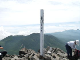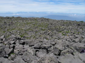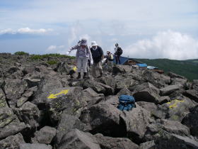 | 大きな岩の上を恐る恐ると歩いて山頂へ |